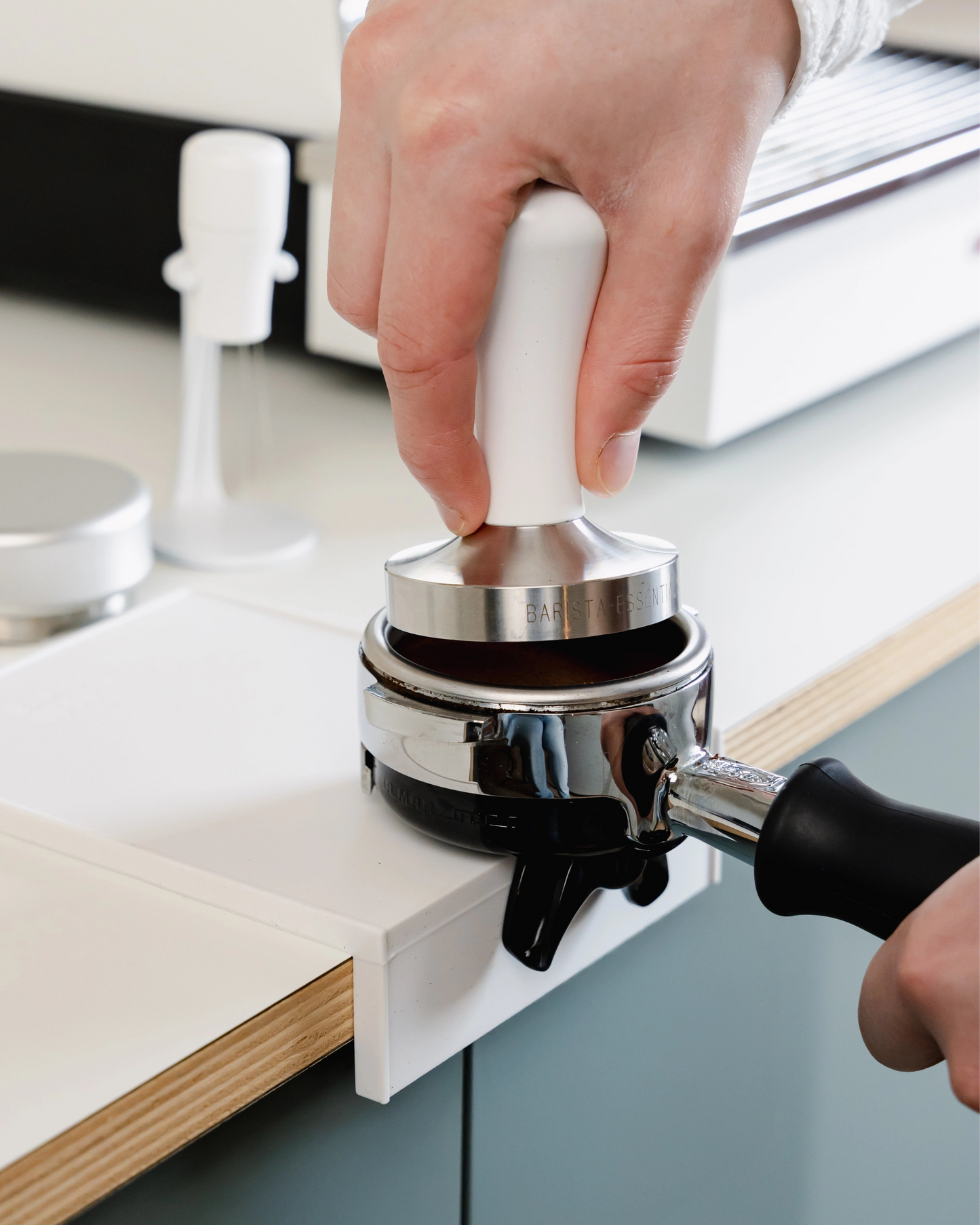 Also, check out our coffee tamper station for comple support of your portafilter while tamping.