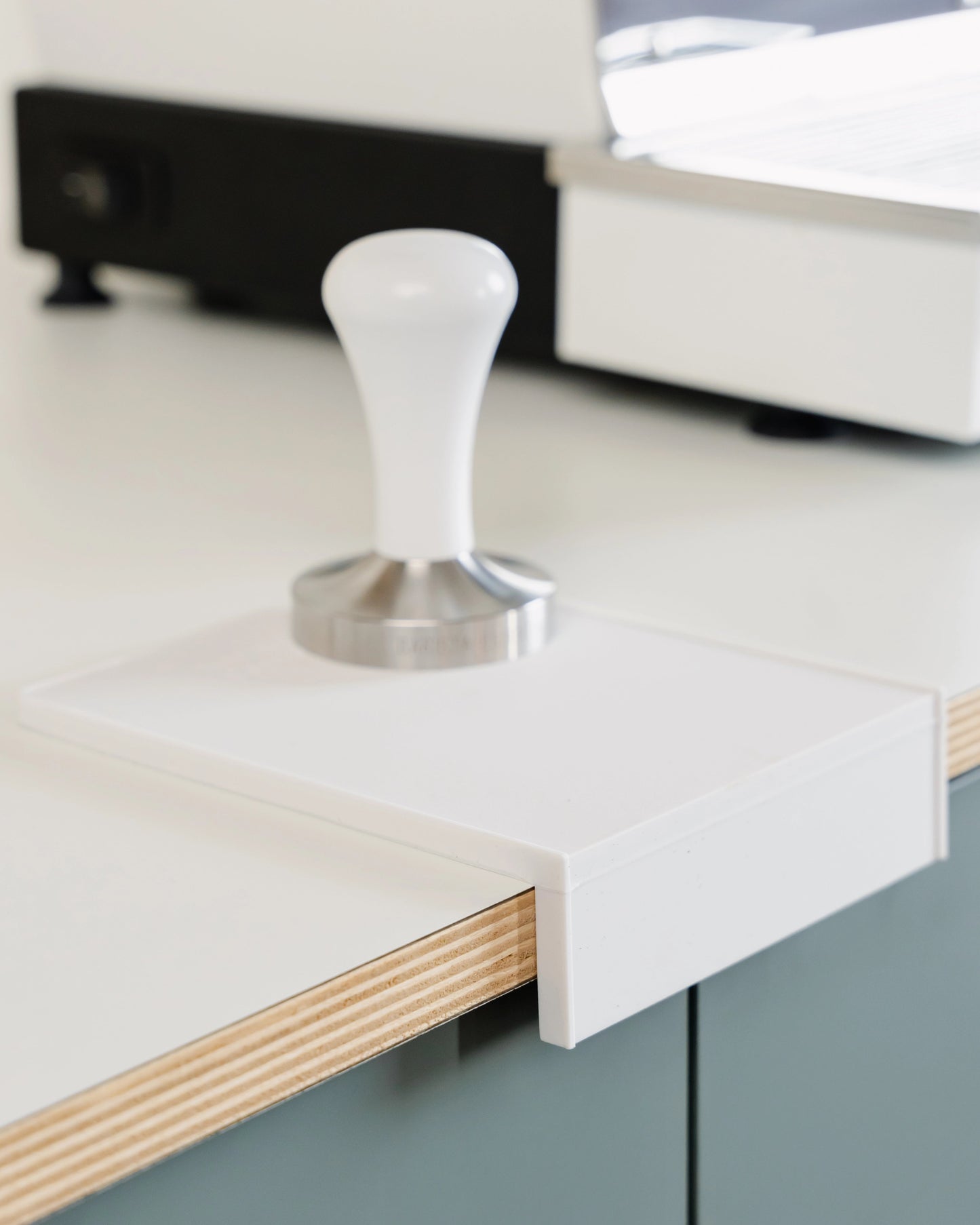 The result? Unevenly tamped (sour) coffee, scratches on my work surface, and a whole lot of mess. That had to change.