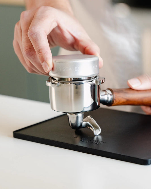 After distributing, it is important to tamp your coffee properly. Here, the right tools also make a difference. Check out our tampers or 2-in-1 tamper and coffee distributor here.
