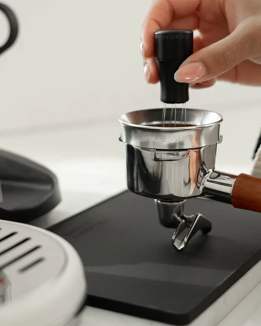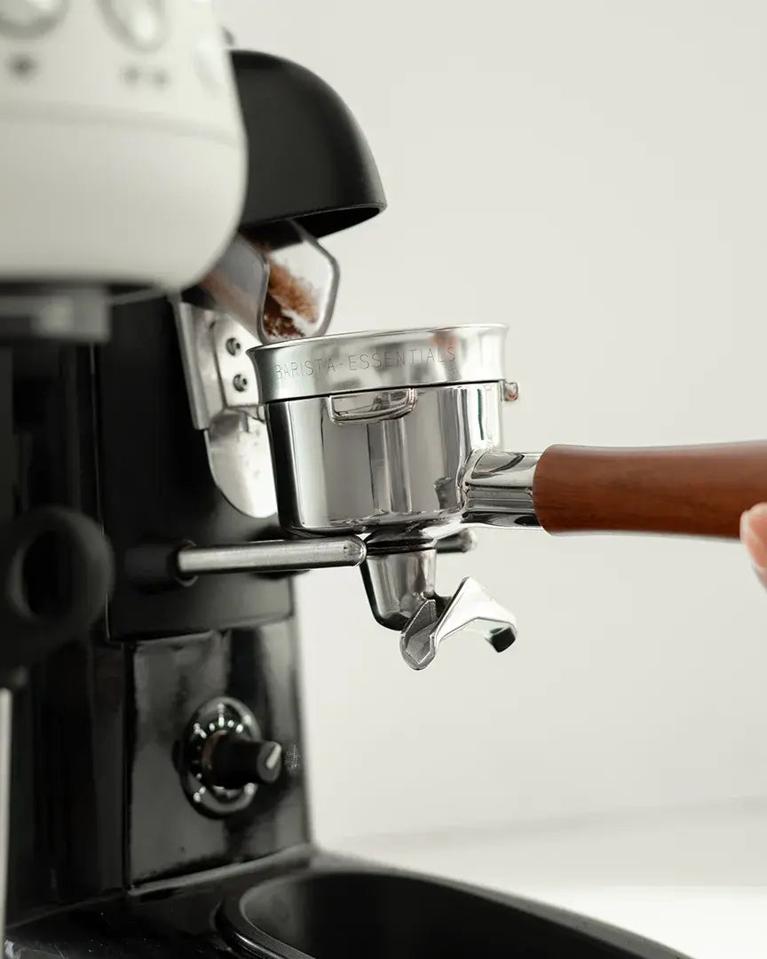 While grinding, a lot of coffee can end up outside your filter basket. That’s a shame, and that’s exactly why a dosing ring is so useful.