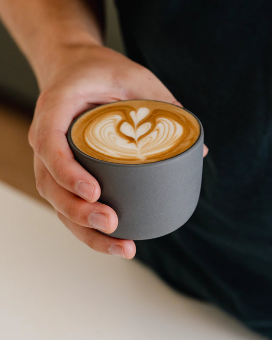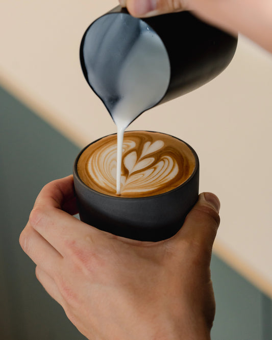 Every millimeter of this latte cup is designed with purpose. We created a latte cup for home baristas: functional, beautiful, and with the perfect ratio for a smooth latte where you can still taste your coffee!