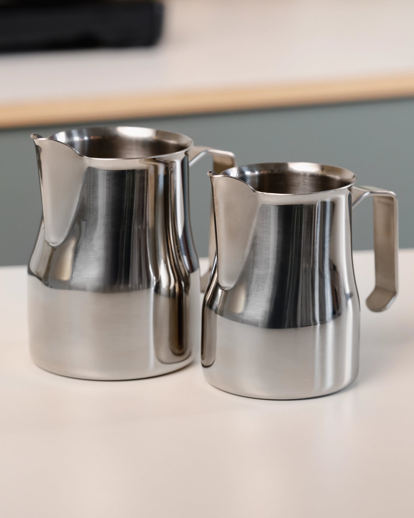 The Milk Frothing Jug Set includes two jugs in your chosen style.