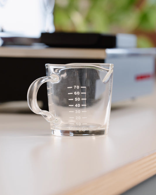 Mit diesem Espressoglas siehst du nämlich sofort, wie es um deine Extraktion steht. Die Crema-Schicht ist direkt sichtbar und mit den Messstrichen kannst du genau überprüfen, ob genügend Kaffee durch deinen Siebträger läuft.