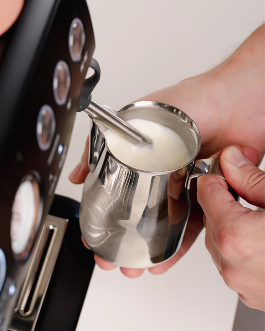 - Edelstahl: Volle Kontrolle über die Temperatur deiner Milch.