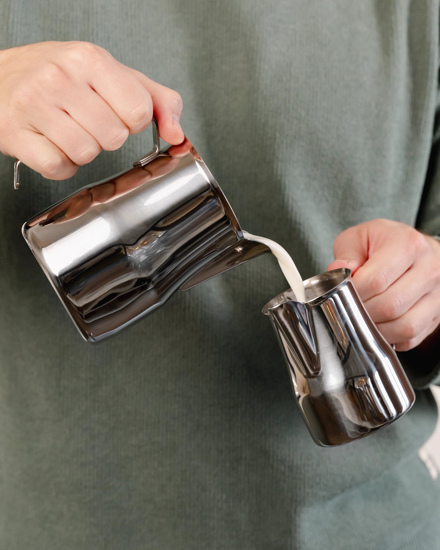 Ich (Jasper) kannte diesen Trick nicht, aber Hugo schwört darauf: Zwei Milchkännchen zu verwenden, ist das Geheimnis für perfekte Latte Art!