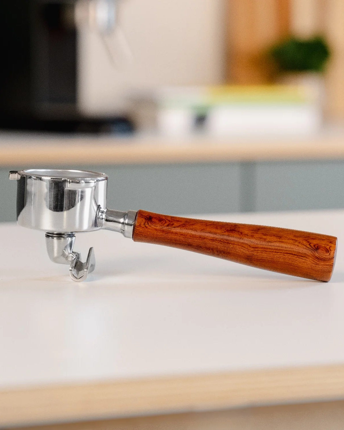 Wir haben viele Materialien und Designs getestet und am Ende unseren eigenen Siebträger mit Doppelauslauf entwickelt.