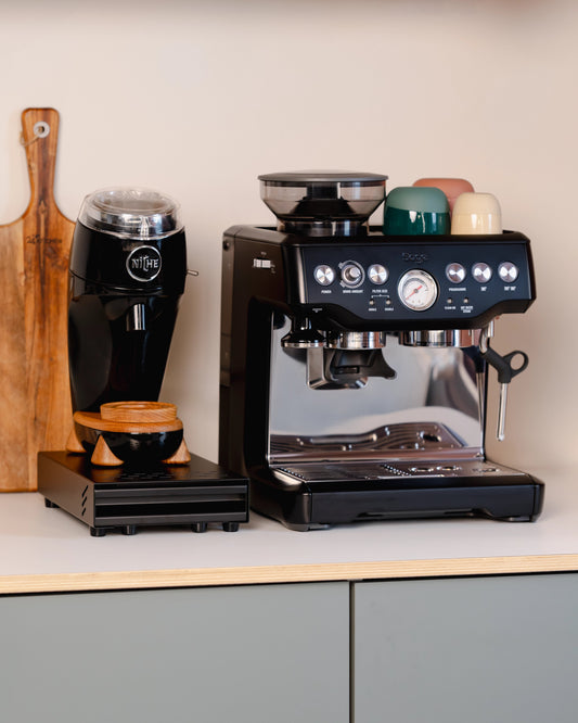 So entstand unsere kompakte Sudschublade! Der ideale Ort, um Kaffeepucks auszuklopfen und gleichzeitig deine Mühle darauf zu platzieren.