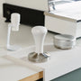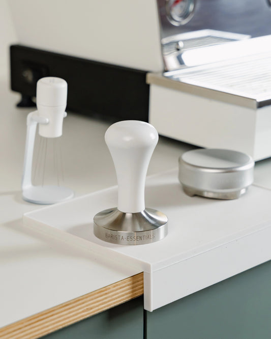 - Solide Edelstahl-Tamperfläche (auch mit Edelstahlgriff erhältlich)