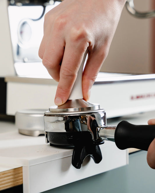 Wenn ein Tamper nicht gut ausbalanciert ist oder nicht richtig passt, tampst du schief oder mit zu viel/wenig Druck.