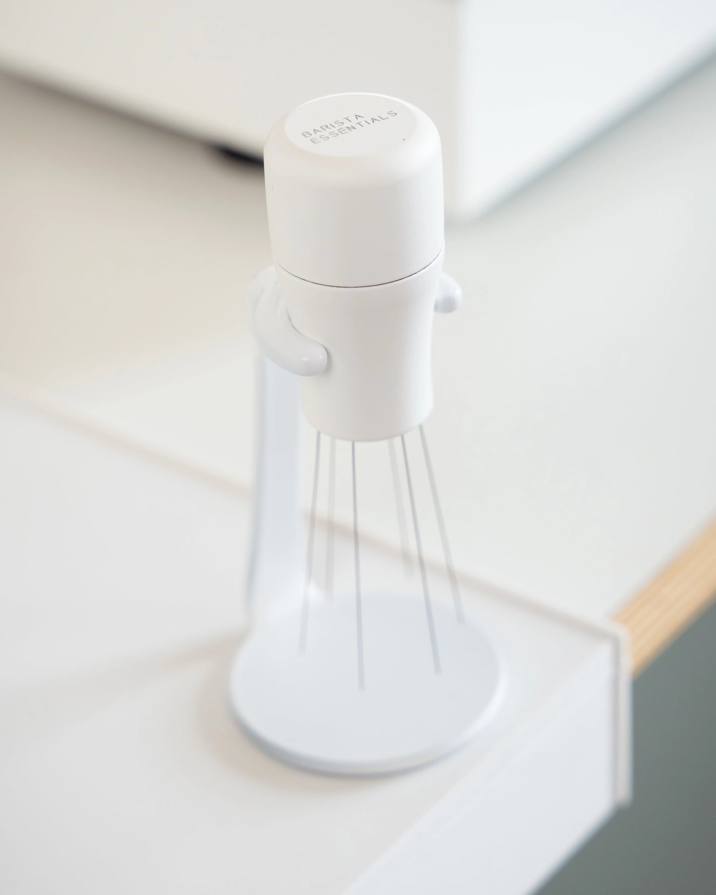 Nach dem Mahlen rührst du mit diesem Tool durch das Kaffeemehl (lass den Dosierring dabei ruhig noch drauf). So entfernst du Klümpchen und verteilst den Kaffee perfekt vor dem Tampen. Und glaub mir: Das macht einen größeren Unterschied, als du denkst.