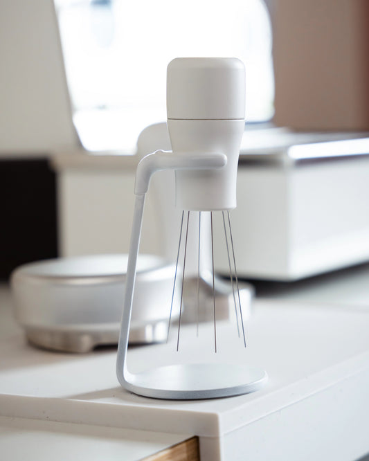 Mit diesem WDT Tool rührst du vor dem Tampen durch das Kaffeemehl in deinem Siebträgereinsatz.